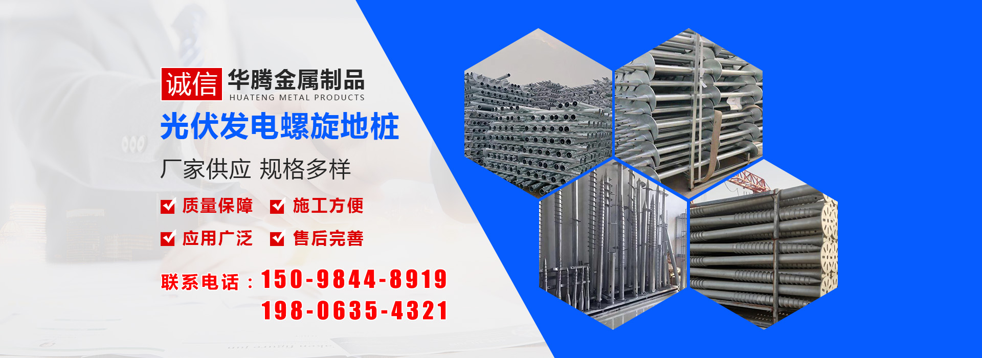 華騰金屬制品 (山東) 有限公司是螺旋地樁公司,主要經(jīng)營(yíng)螺旋地樁、光伏地樁等產(chǎn)品,品種規(guī)格齊全,并可根據(jù)客戶的需求、圖紙、樣品研發(fā)產(chǎn)品。